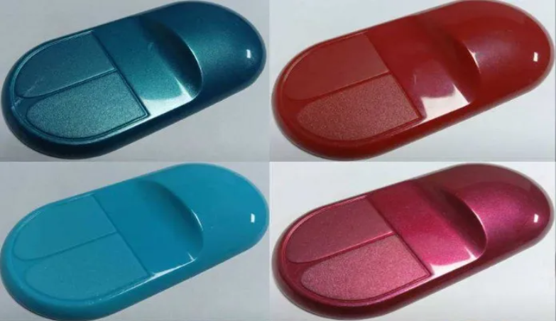 Spray-free plastic is made of plastic raw materials (PP, ABS, AS, PC, etc.) with different display effects by adding metal powder, pearlescent powder, ceramic powder, high-gloss color powder, etc. through melt blending, so that it comes with special color effects.